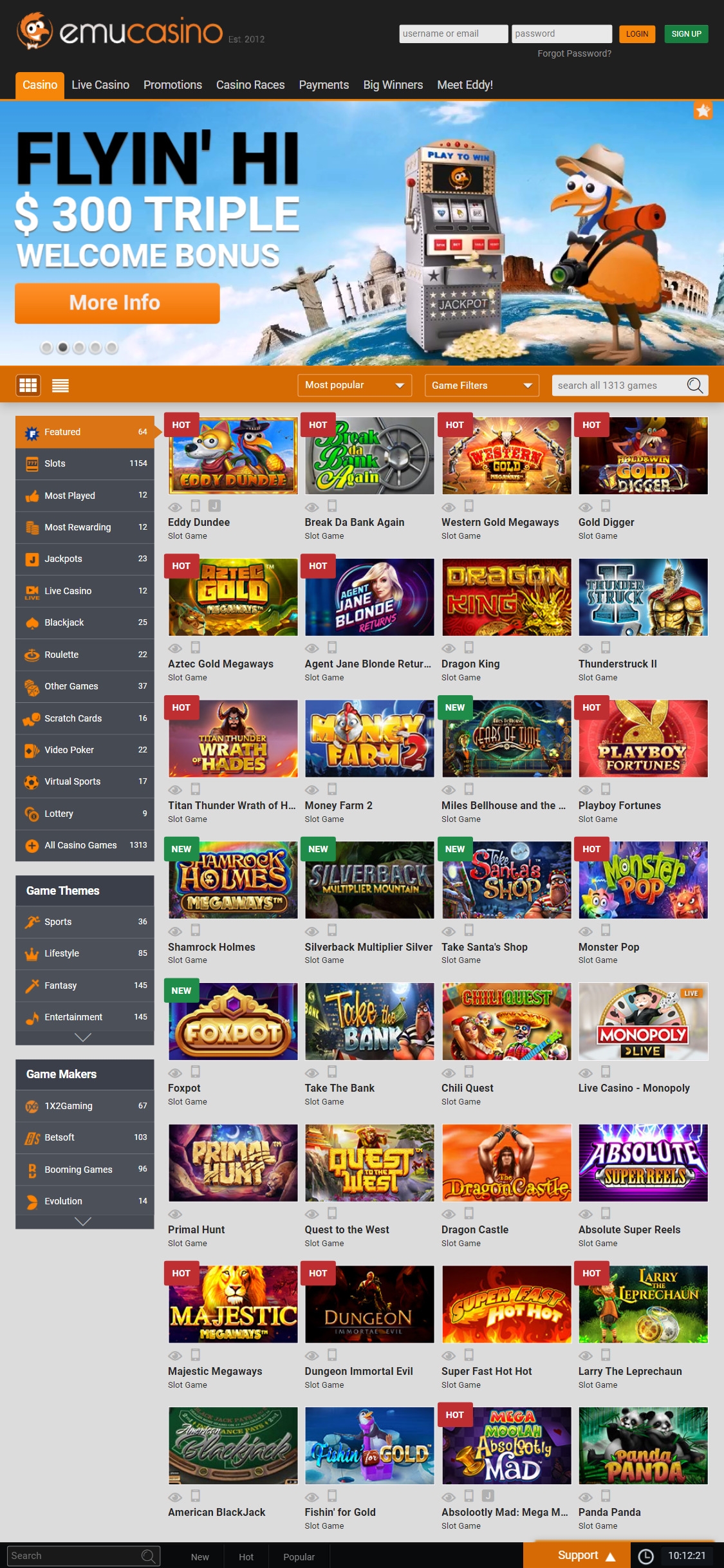 Whether it's a progressive slot like Mega Moolah or a jackpot game like Caribbean Stud Poker, Emu gives you the opportunity to chase life-changing wins.