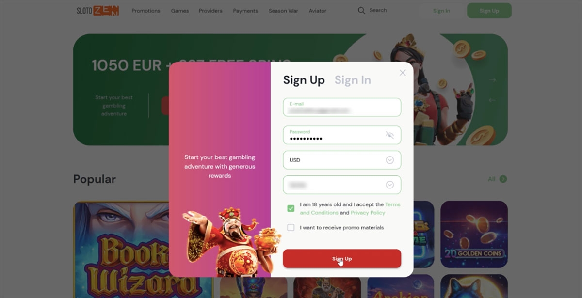 If you're ready to start playing at Slotozen Casino, follow these simple steps to create your account: