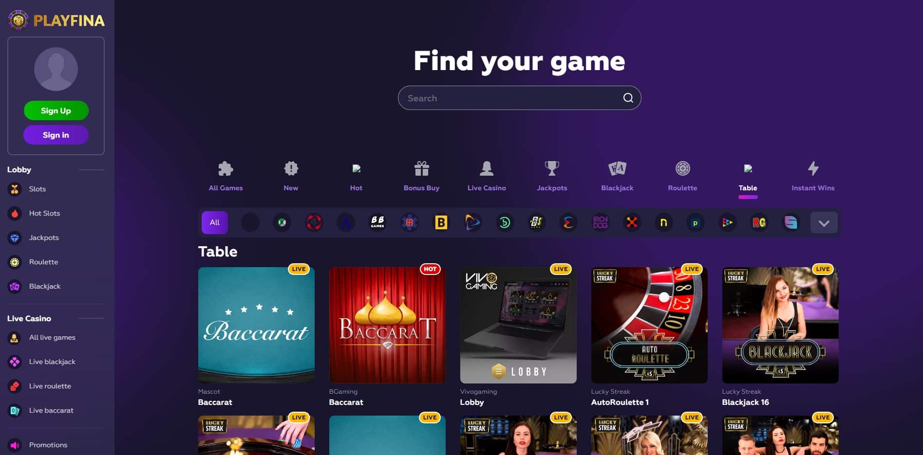 Go to the Playfina website.