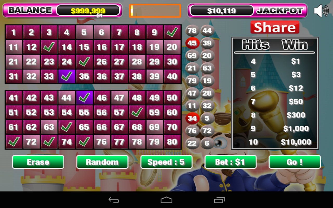 The game is played using a random number generator (RNG), ensuring fair and unbiased results. The RNG selects 20 numbers at random, and these numbers are then displayed on the screen. Players win based on how many of their selected numbers match the numbers drawn.
