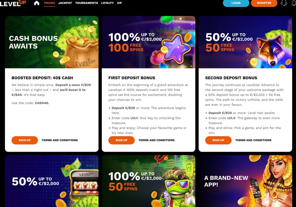 Levelup Casino rewards its players with exciting promotions and bonuses. As a new player, you'll be greeted with a generous welcome package that includes a no deposit signup bonus. This bonus allows you to try out the casino games without risking your own money. Additionally, Levelup Casino offers regular promotions, such as reload bonuses, free spins, and cashback offers, to keep the excitement going.